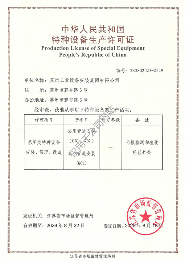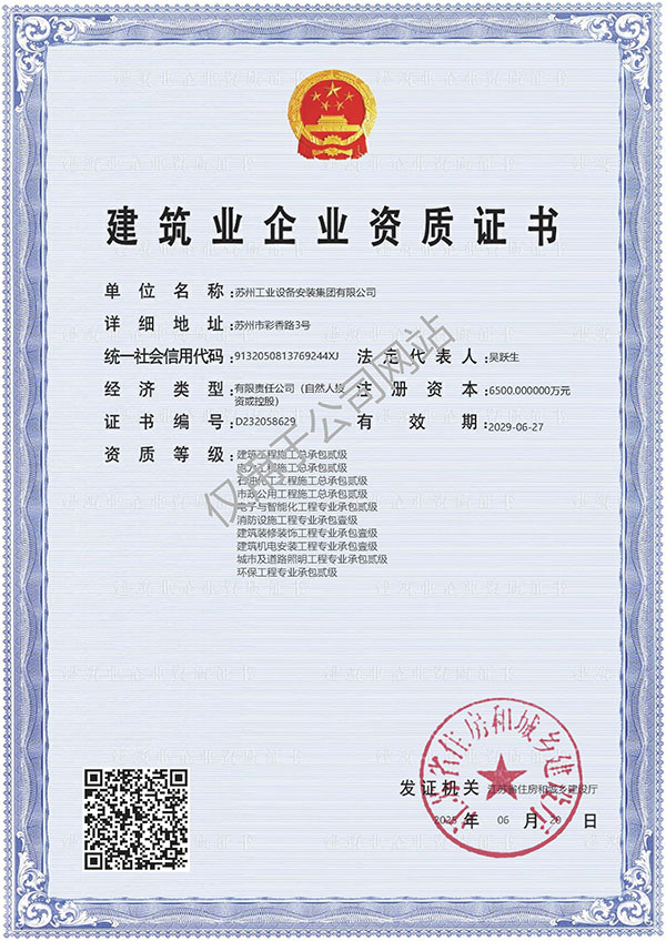 苏州工业设备安装集团有限公司原名江苏苏州工业设备安装集团公司,始创于1956年,2003年改制为有限责任公司。现有注册资本6500万元,是苏州市首家被国家建设部核准的机电安装工程施工总承包一级资质企业。