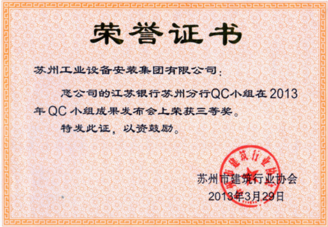江苏银行苏州分行QC小组在2013年QC小组成果发布会上荣获三等奖